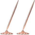 受付ペン 署名ペン デスクペン スタンド付 ボールペン ホテル フロント 結婚式 ウェディング 応接間 (ピンクゴールド/2本セット)