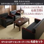 (タイムセール中) 応接セット おしゃれ 4人用 オフィス・自宅 4点セット 1人掛け×2+2人掛け+テーブル 高級木肘応接室椅子