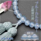国産京都の数珠・念珠【京念珠:ブルーカルセドニー共仕立】女性用数珠・正絹頭付房 化粧箱付でネコポス送料無料
