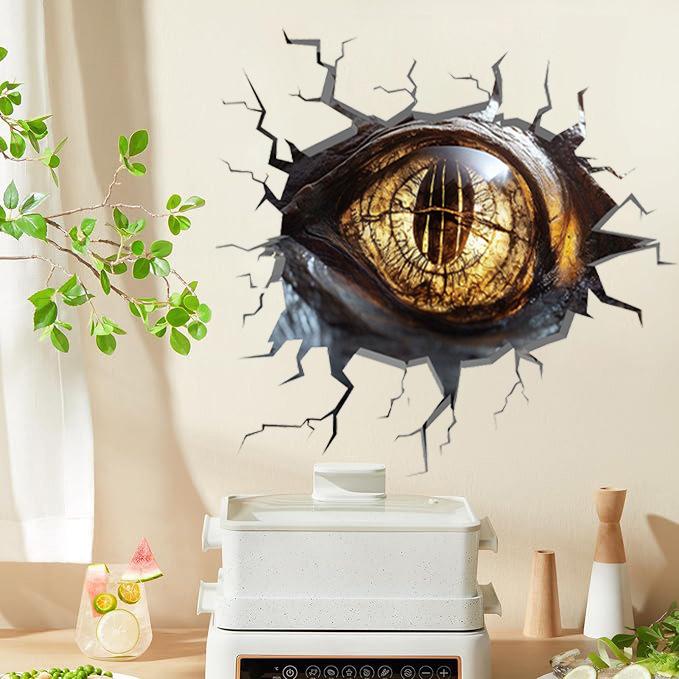 ウォールステッカー 恐竜アイ 3D 立体 飛び出す 割れ壁 クラック ユニーク おしゃれ アート 貼って剥がせる 再剥離 PVC製 防水 防汚 リビング 居間 寝室 部屋飾り インテリア モダン カラフル