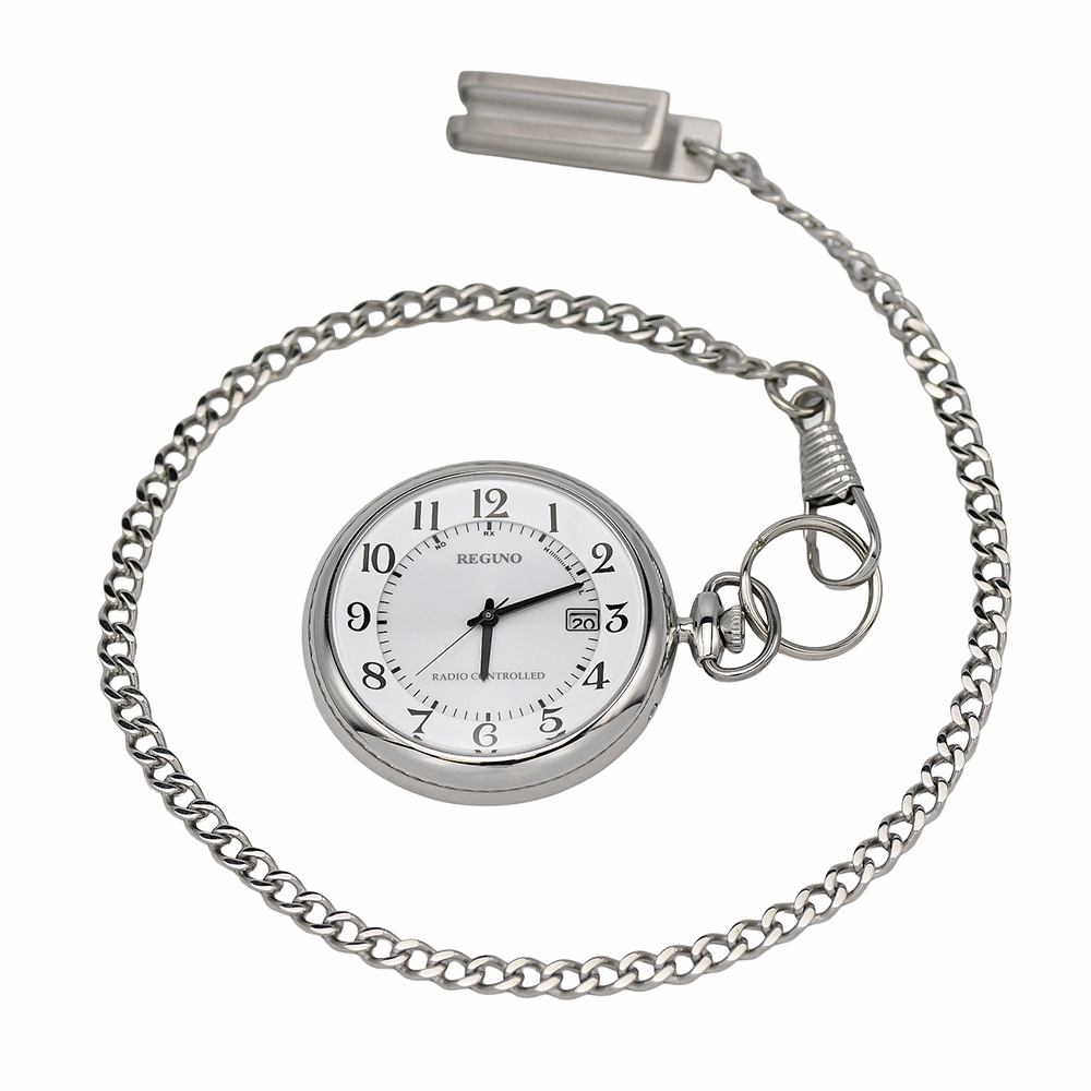 【クーポンで5%OFF!さらにポイントUP!】 シチズン CITIZEN アナログ懐中時計 ポケットウォッチ REGUNO レグノ ソーラーテック電波 ホワイト KL7-914-11 未使用 【中古】