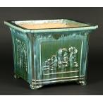 広東緑釉浮彫正方鉢 盆栽鉢 鉢 植木鉢 bonsaipot pot 中国鉢 支那鉢 広東 緑色 17号 50cm 雑木盆栽 大型盆栽 懸崖 半懸崖樹に最適