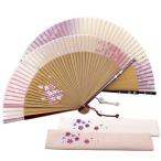 扇子 レディース <姫桜扇子セット> 袋ケース付き 女性用 母の日 お中元 名入れ プレゼント ギフト 記念日 お祝い おしゃれ かわいい モダン 上品 華やか 花柄 桜 ピンク 高級 ブランド 【創業1718年 京都老舗 扇子の白竹堂】