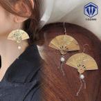 ピアス 金属アレルギー アクセサリー フック式ゴールド 扇子 扇 パール ぶら下がり 個性的 エレガント ゴージャス 大ぶり パーティ オシャレ