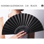 SUEHIRO SENSU 七宝 BLACK(末広扇子 ブラック レザーファン 牛本革使用 本革扇子 高級扇子)