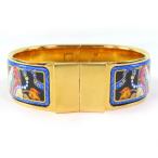 美品△HERMES エルメス ロケ エマイユGM 扇子柄 七宝焼き バングル ブレスレット アクセサリー ゴールド マルチカラー 箱付き レディース