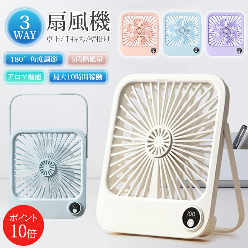 【P5倍+2点10%OFF】扇風機 卓上 超静音 卓上扇風機 ミニ扇風機 小型 コードレス オフィス デスクファン 静音 デスクファン コンパクト 風量5段階 角度調節 携帯 手持ち 壁掛け アロマ機能 スリム キッチン 寝室 換気 外出 シンプル アウトドア 長時間 熱中症対策 夏休み