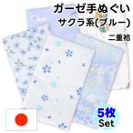 ガーゼ手ぬぐい 二重袷 日本製 5枚セット ブルー系 サクラ1 サクラ2 小花 和ウサギ フクロウ 手ぬぐい 手ぬぐいタオル