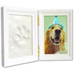 ペットフォトフレーム 犬 猫 手形 足型 粘土 写真立て 肉球 メモリアル (ホワイト)