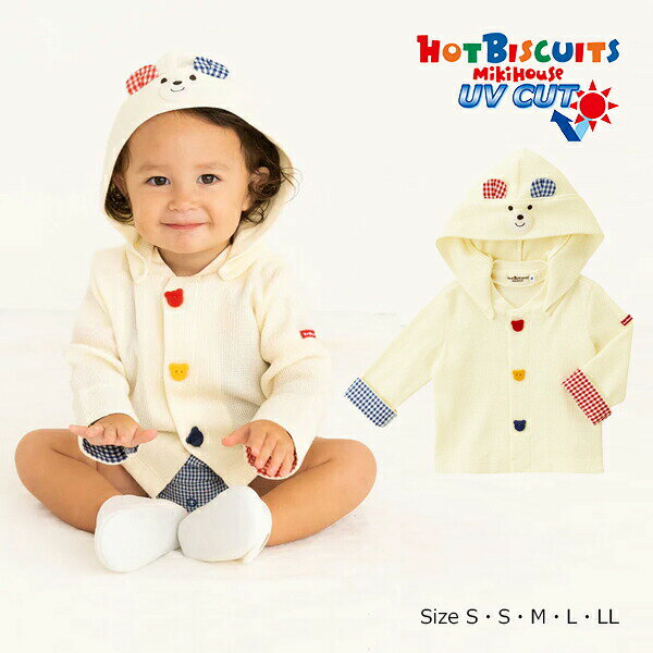 ● 期間限定P11倍 ● 30%OFFセール ● ミキハウス ホットビスケッツ mikihouse パーカー( 70cm 80cm 90cm 100cm )アウトレット 子ども服 赤ちゃん ベビー 幼児 キッズ 女の子 男の子 薄手 羽織り UVカット 春 夏 秋 可愛い アイボリー