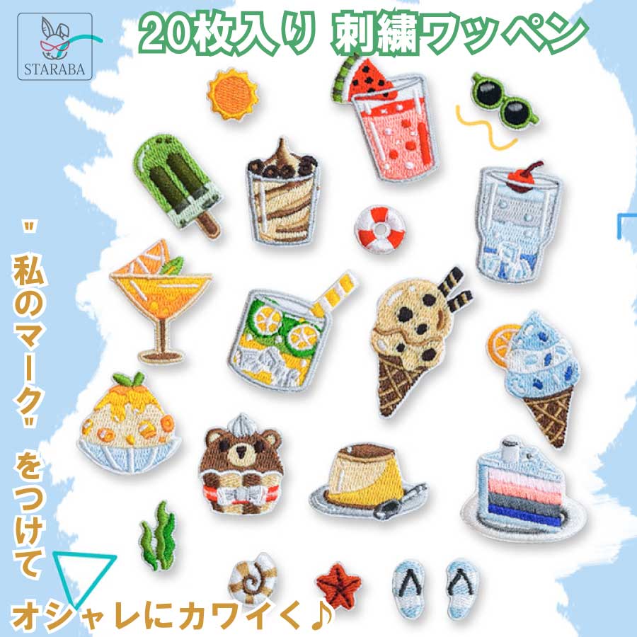 「エントリーでポイント10倍 」刺繍ワッペン アップリケ 20枚入り パッチステッカー 熊 スイーツ アイス かわいい 刺繍 DIY服 補修パッチ 肘補修 手芸 手作り 衣類 帽子 かばん 飾り 縫い付け 女の子 男の子メール便 送料無料