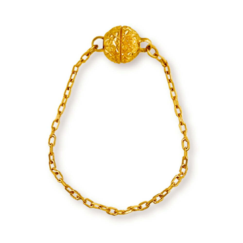 【1個売り】 留め具 18金 イエローゴールド ブレスレット用マグネット式クラスプ ボール型 補助チェーン6cm付き 縦7.5mm 横5.0mm|手芸用品 金具 飾り パーツ 部品 K18YG k18 18k 貴金属