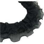 レース リボン フリル テープ ポリエステル ゴム付き ギャザー 25mm幅 9m ■ 推し活 ラブリー ロリータ ブラック ダンス 衣装 手芸 ■