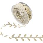 リーフ リボン トリム 葉っぱ 飾り ギフト 結婚式 手芸 装飾(ゴールド, 幅2.5cmx15m)