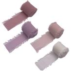 シフォン リボン 4個セット 5m フリンジ 切りっぱなし ラッピング フレッジ 無地 布 手芸 ハンドメイド(パープル&ピンク)