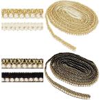 手芸 ブレード パール 飾りレース 9.5m ビーズ付き レースリボン 手芸材料 服装素材 ハンドメイド 衣装用 縫製装飾 MDM( 金と黒)