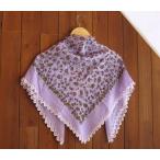 【10%OFFクーポン対象品】トルコの伝統手芸・レース編みのオヤスカーフかぎ針編みのトゥ・オヤ90×90cm花と穂 紫