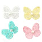 レース パーツ アップリケ パール付き蝶々 (30) 10個売り ワッペン 刺繍 生地 アクセサリー パーツ 素材 ハンドメイド 手芸用 アイロン不可