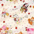 YUWA Happy Sewing Animals シャーティング 松山敦子 レトロ 動物柄 ネコ ネコ柄 猫 猫柄 有輪商店 生地 布 数量3(30cm)から10cm単位 8736