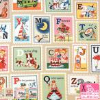 Hello Again2 Alphabet stamps シャーティング レトロ アンティーク風 英字 切手柄 シャーティング生地 生地 布 LW2070H-11 数量3(30cm)から10cm単位