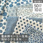 生地 和調生地 藍染調モーリー生地 和モダン 和柄 手捺染 綿100% 約110cm巾