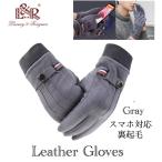 手袋 メンズ 革手袋 スエードレザー グローブ 裏起毛 革 バイク 液晶タッチ パネル対応 スマートフォン対応 スマホ手袋 グレー