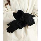 手袋 「スマホ対応」レディース 裏起毛パイピングスリットリボン装飾グローブ レディース