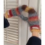 手袋 8E11 鹿の子編み 配色ニットハンドウォーマー バイカラー スマホ操作OK 裏ボアフィンガーレス レディース
