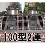 (欠品時・受注生産となります) イソライトかまど 100型 2連式 左33cm羽釜、右28cm羽釜適応 重量123kg 革手袋1双付き (羽釜、煙突別売) 100型二連式