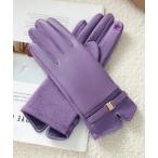 手袋 「タッチパネル対応/指先着脱式」金装飾ワンポイントタグスエード風あったかフリース手袋 レディース レディース