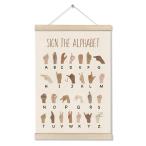 DOI-LANEE ASL アルファベットポスターハンガーフレーム、幼児向け教育ポスター16x12インチ、アメリカ手話、ABC学習ウォールアート、ボーホー教室の装飾、プレイ