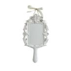 ウォールミラー ホワイト 手鏡型 44cm 壁掛け 鏡 装飾 リボン付き ロココ調 飾り