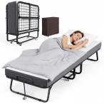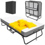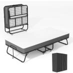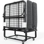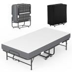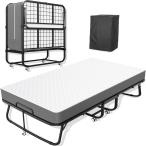 【並行輸入品】Fabulis 折りたたみベッド マットレス付き ポータブル折りたたみ式ベッド 大人用 キャスター付きベッドゲスト 低反発マットレ