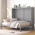 【並行輸入品】Murphy Bed クイーンサイズ キャビネットベッド 充電ステーションと収納キャビネット&シェルフ付き 木製折りたたみ式壁ベッ