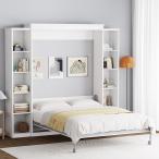 【並行輸入品】BEQAI クイーンマーフィーベッド 収納本棚 & 4つの調節可能な棚付き 折りたたみ式 省スペース クイーンウッド壁ベッドフレー