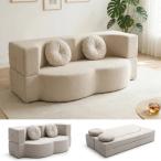 ソファーベッド ソファベッド ローソファー 2人掛け マルチに使える3WAY 幅108cm 6段階リクライニング クッション付き 座椅子 1人掛け 2人掛け ソファ 折りたたみ 折り畳み コンパクト 折りたたみベッド (キャメル)