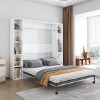 【並行輸入品】LUMISOL(ルミソル) フルサイズ マーフィーベッドキャビネット フルマーフィーベッド 収納本棚付き 折りたたみ式プラットフォ