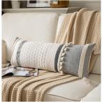 【並行輸入品】Caflife ボーホー ランバー スロー枕カバー 14x36インチ ロング 装飾枕 ベッド用 ブラック ベージュ 織物 抱き枕カ