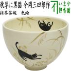 茶道具 抹茶茶碗 色絵茶碗 秋草に黒猫 今岡三四郎作