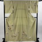 訪問着 身丈170cm 裄丈67.5cm L 袷 草花 流水 金彩 染分け 抹茶色 正絹 美品 名品 中古