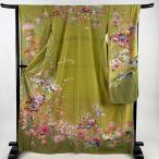 振袖 身丈169cm 裄丈67.5cm L 袷 真一 落款あり 梅 牡丹 ぼかし 抹茶色 正絹 逸品 中古