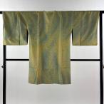 結城紬 身丈164cm 裄丈64.5cm M 袷 奥順 はたおり娘 証紙あり トンボ 抹茶色 正絹 逸品 中古