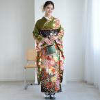 振袖 レンタル 成人式 21点セット レトロ 結婚式 結納 前撮り 振袖セット 花 緑系 正絹 抹茶グリーンモダン
