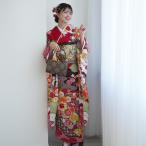振袖 レンタル 成人式 21点セット レトロ 振袖セット 結婚式 結納 花 赤系 正絹 赤と紫と抹茶のモダン
