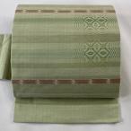 名古屋帯 美品 逸品 紬地 縞 幾何学 刺繍 抹茶色 正絹 中古