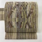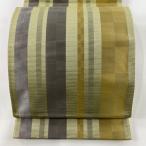名古屋帯 美品 秀品 縞 幾何学模様 抹茶色 正絹 中古