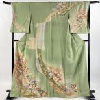 訪問着 身丈154cm 裄丈62cm S 袷 桜 草花 ぼかし 抹茶色 正絹 美品 秀品 中古