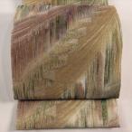 袋帯 美品 名品 証紙あり オーロラ 銀糸 箔 抹茶色 六通 正絹 中古