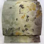 袋帯 美品 名品 草花 金銀糸 抹茶色 お太鼓柄 正絹 中古