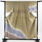 付下げ 身丈154.5cm 裄丈63cm S 袷 紬地 青海波 麻の葉 抹茶色 正絹 名品 中古